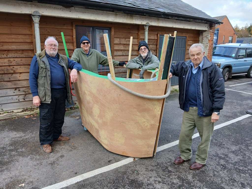 The Phoenix Theatre in Bordon asked the Bordon Men’ shed to build a pirate ship for the Phoenix Players production of Robinson Crusoe taking place in the 2nd week of December. It’s a adult ‘saucy’ panto. We built the pirate ship out of an old prop shed that was left in our temporary workshop behind the theatre. Once constructed, more artistic people in the theatre will decorate it. Ho ho me hearties!” Yo ho ho and a bottle of rum!