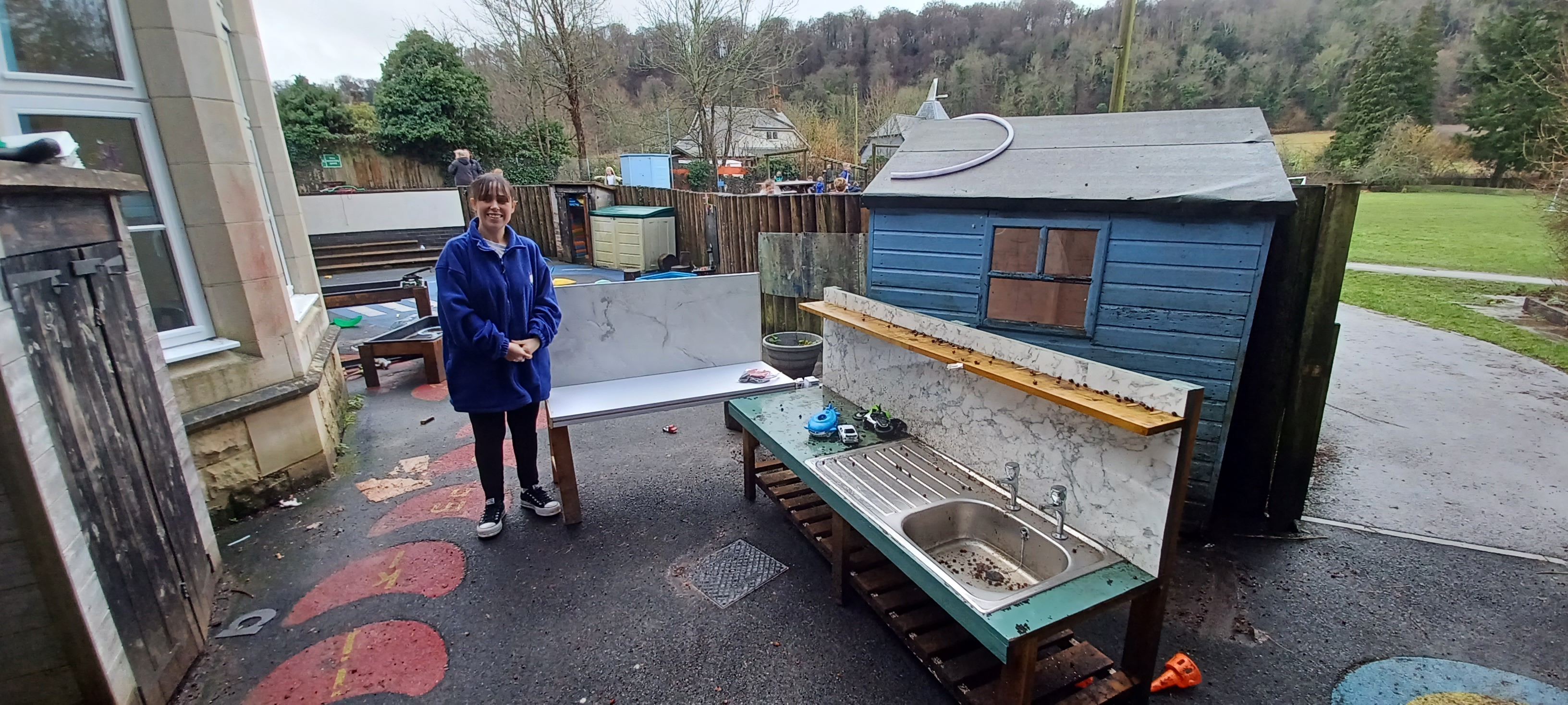 Two projects were delivered today from the Men’s Shed. The first one was to Selborne C of E Primary School and is a play cooker to go with the mud kitchen delivered last year (pictured). The first picture shows Charlotte Brown, a teaching assistant at the school. All members of the Men’s Shed were involved with the construction.